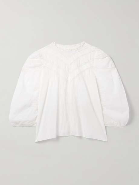 DÔEN's 'Adelphine' blouse captures a romantic, bohemian spirit with its delicate crochet inserts, pintuck pleats and voluminous sleeves. It's made from cotton-voile for a light and airy feel and is gathered at the reverse.
