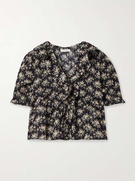 DÔEN's 'Henri top is a lovely confection of ruffles and pintucks. Made from floral-print organic cotton-voile that's grown without the use of harmful pesticides and synthetic fertilizers, it has smocked puffed sleeves and flouncy ruffles tracing the neckline. It looks sweet styled with straight-leg jeans.