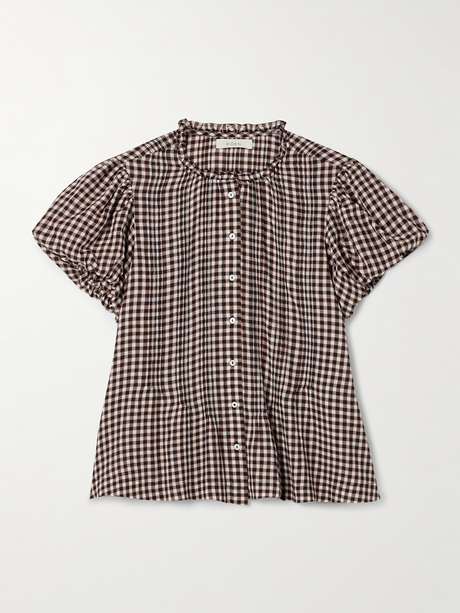 DÔEN’s collections are imbued with a sense of nostalgia, blending vintage elements with a distinctly Californian ease. This 'Millie' blouse is made from checked organic cotton-voile and has dramatic, puffed sleeves and subtle ruffles. Undo a few top buttons for a more relaxed feel.