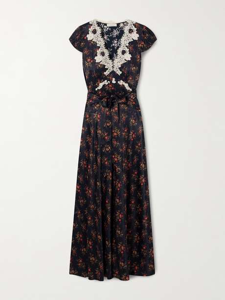 DÔEN's 'Coraline' maxi dress takes cues from romantic lingerie. Designed with lace trims along the V-neckline, it's made from panels of floral-print silk-satin that are strategically cut and placed to draw the eye inward and has gently puffed sleeves. Adjust the slim ties to accentuate the waist.