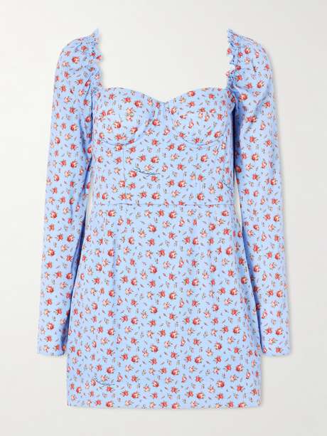 This romantic and feminine mini dress by Dolce&Gabbana showcases the label's love of flowers. Crafted from a soft silk blend, it has ruffled sleeves and a close-fitting bodice with sculpted cups. Highlight the rosebuds with a red or dark-pink lip.