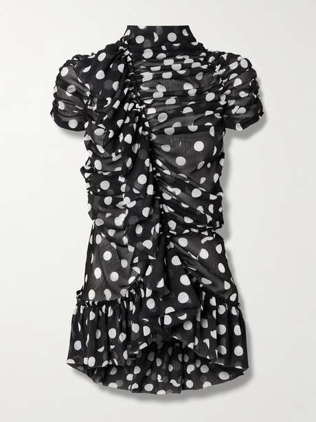 Dries Van Noten has a distinctive eye for texture, contrast and detail-driven design. This blouse is composed of folded and ruffled crepon, with a ruched seam through the center for shape. Take cues from the runway and pair it with contrasting polka-dots.