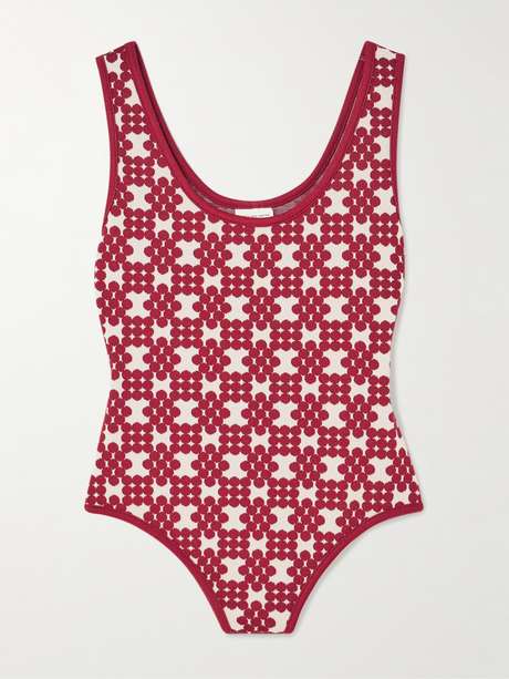 Dries Van Noten's bodysuit is jacquard-woven with red circles arranged into a geometric pattern. It's knitted to hug your frame and has a deep scooped neckline that's mirrored at the back. Wear yours with the matching mini shorts.