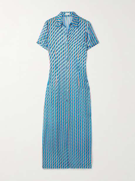 Dries Van Noten is famed for marrying color, texture and pattern so artfully. This shirt dress is made from silk-rich devoré-satin with a colorful striped pattern.