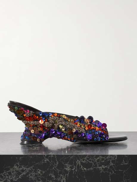 There's so much artistry to these Dries Van Noten mules. Set on curved wedge heels, they're made from smooth satin and with low-cut vamps and open toes. The colorful paillette and bead embellishments give them that disco-ready feel.