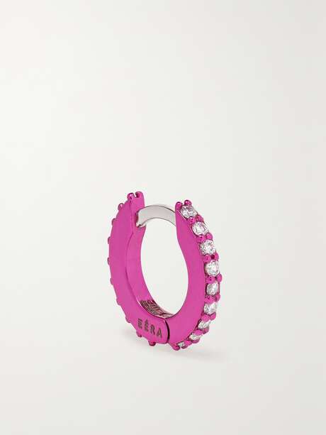 EÉRA founders Chiara Capitani and Romy Blanga create cool jewelry that sparks joy. Made from white gold with a vibrant fuchsia coating, this hoop earring is set with 0.153-carats of twinkling diamonds. Curate a unique ear stack with different designs from our edit.