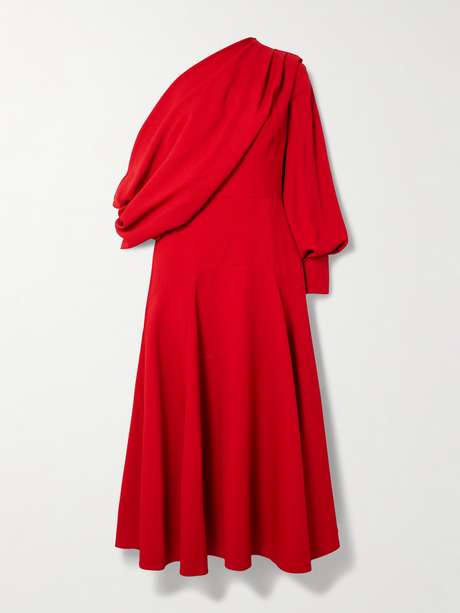 Emilia Wickstead's Fall '25 collection is inspired by costumes in Alfred Hitchcock's 1963 film The Birds'. Made from weighty red crepe, this 'Sehima' dress has a draped neckline that looks as though it's falling elegantly off your shoulder. It cinches at the waist before falling to a flowy skirt. Emulate the runway and wear yours with lace-up boots.
