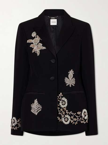 Erdem's blazer is traced with intricate crystal and pearl florals that lend it a romantic feel. Tailored from grain de poudre wool, it’s shaped with sharp lapels for a streamlined silhouette.