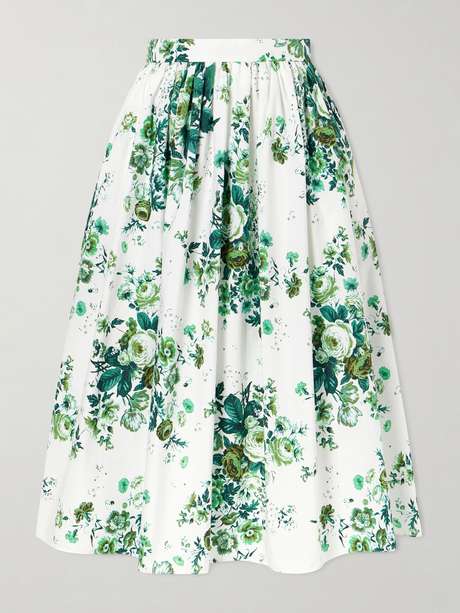 EXCLUSIVE AT NET-A-PORTER. Step into Erdem Spring ’26, where fantasy and history intertwine. Patterned with lush florals and foliage, this skirt is cut from cotton-poplin that holds the full, pleated shape beautifully.