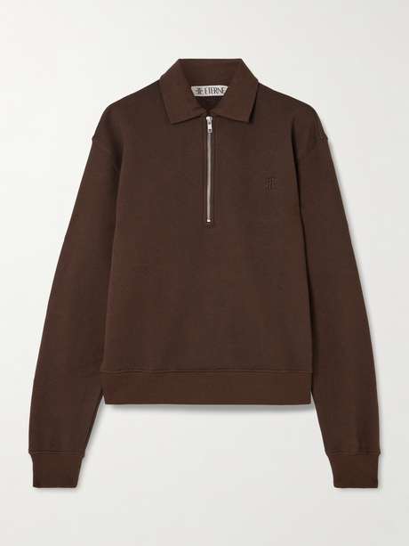 ÉTERNE Embroidered French cotton and modal-blend terry half-zip sweatshirt