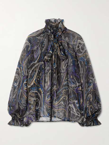 ETRO Pussy-bow printed metallic silk-crepon blouse