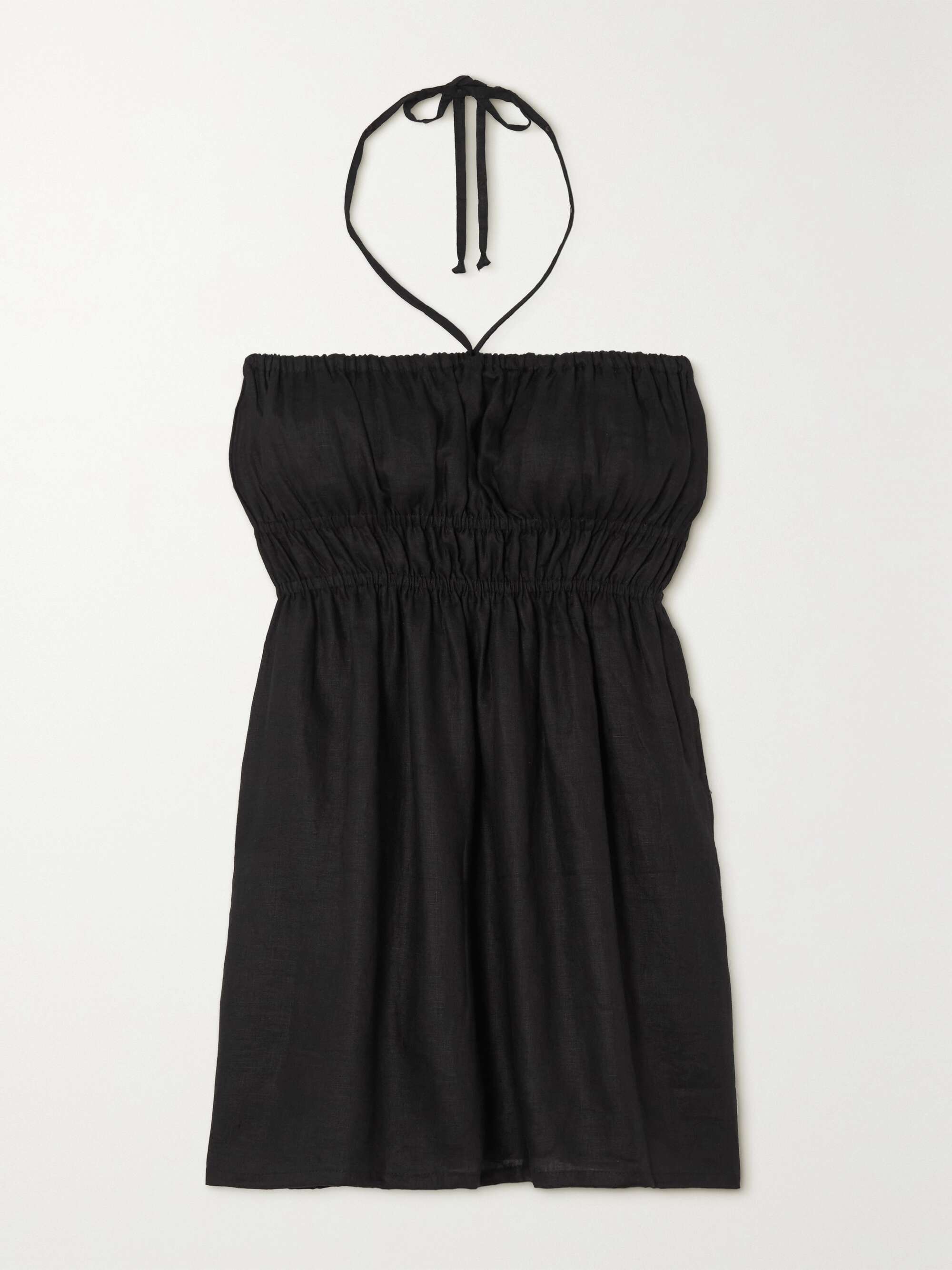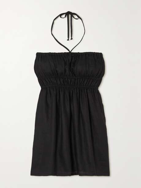FAITHFULL Ester smocked linen halterneck mini dress