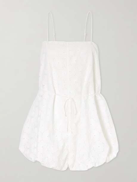 FAITHFULL’s 'Rosella' playsuit captures the lightness of sun-drenched days. Made from delicate broderie anglaise, it's lightly gathered at the waist with a dainty tie belt before falling into softly ballooned shorts.