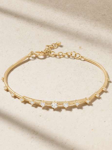 Fernando Jorge's 'Parallel' collection is meant to "evoke a balance between structure and simplicity, strength and delicacy". Part of the range, this bracelet is cast from 18-karat gold and has a dainty snake chain adorned with 0.37-carats of graduating round-cut diamonds along the front. Adjust the length to find the perfect fit.