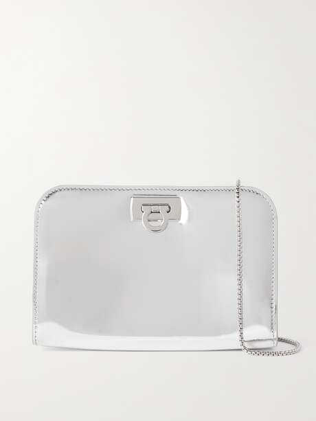 You can always count on Ferragamo to deliver sleek accessories. This wallet has been crafted in Italy from smooth silver leather and has a detachable chain strap, so you can wear it as a clutch. Inside, there's a handy slip pocket and enough space for your phone, keys and lip gloss.