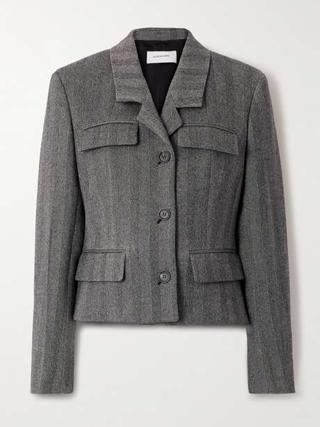 Ferragamo's blazer takes its shape from 1930s styling and flap pockets from traditional military uniforms. Tailored from herringbone wool-blend, it's patterned with tonal stripes and has a slightly cropped shape with a three-button close. Pair yours with the coordinating mini skirt.