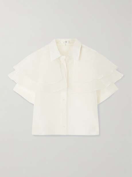FRAME's blouse comes with a fluttery cape-effect panel that you can detach depending on your outfit. It's made from silk-organza with a slightly sheer finish and fastens with a neat row of lustrous buttons. Underpin yours with a tonal bralette or camisole.