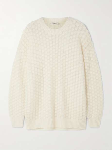 A subtle nod to abstract style, FRAME's 'The Cloud' sweater is knitted with tonal circles and has a classic crew neckline – ideal for framing a pendant. The dropped sleeves and ribbed trims add a relaxed feel.