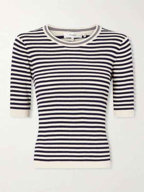 FRAME's sweater is knitted with classic horizontal stripes and a close, streamlined fit. Designed with short sleeves and ribbed trims, it offers a clean, structured feel.