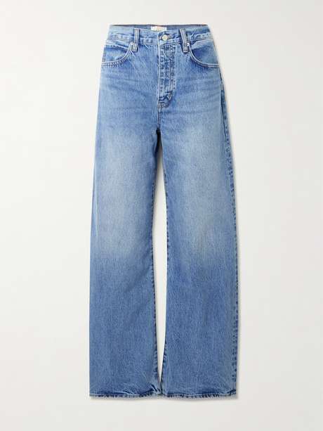 FRAME's 'The Bow' jeans are cut from a rigid denim that's been chosen to neatly hold the shape of the curved legs. They come in a light-blue 'Rapture' wash and sit high on the waist.