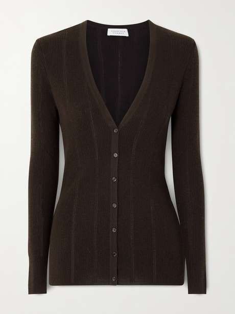 Gabriela Hearst's 'Lillian' cardigan has been knitted with vertical pointelle stripes, giving it a slightly sheer, delicate feel. It's made for a close fit from chocolate wool and fastens with glossy buttons. Highlight the deep neckline with a pendant or two.
