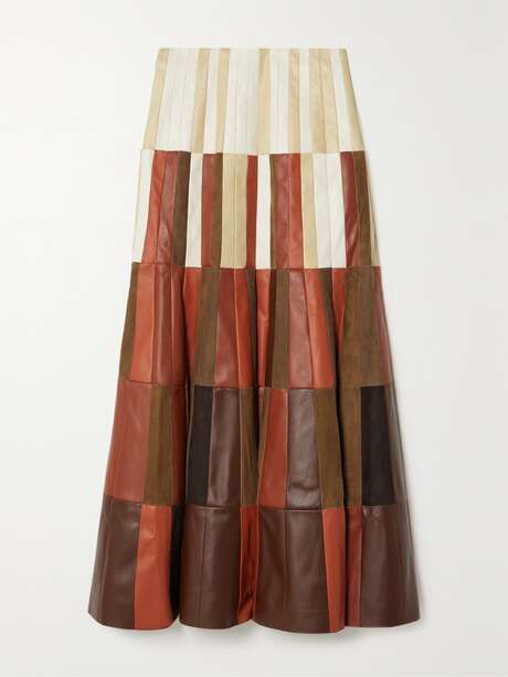 Exquisite craftsmanship is at the core of Gabriela Hearst's collections, as this 'Mayita' skirt elegantly attests. It's made from panels of suede and leather an artisanal marquetry technique in warm terracotta, burgundy, chocolate and cream hues. Pair yours with a fine-knit sweater.