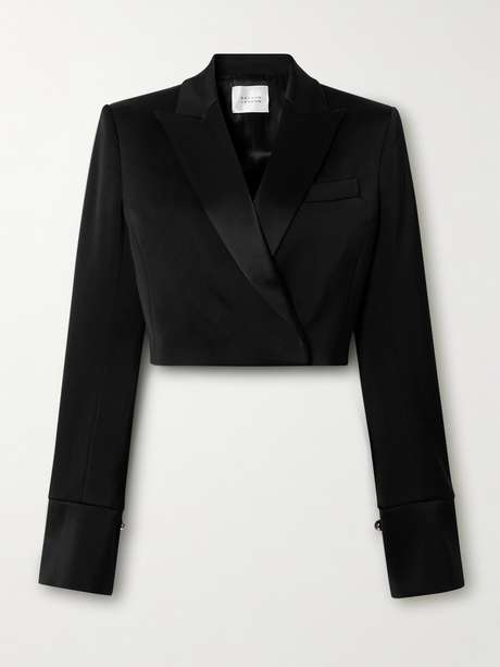 Galvan's 'Strata' blazer balances polish and precision. Tailored from duchesse-satin, it's cut in a sharp, cropped profile with peak lapels and wide sleeves gathered in an ornate piercing. Team yours with the label's semi-sheer pants for the ultimate party look.