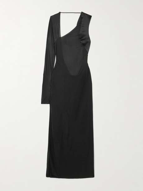 GALVAN Modernist one-sleeve satin and stretch-tulle midi dress