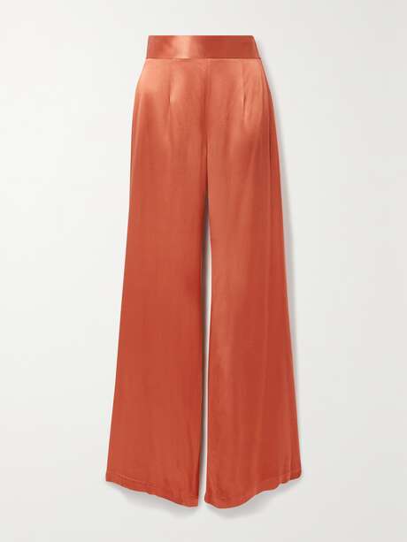Galvan is best known for its gowns, but these satin 'Lido' pants and the coordinating blouse are proof that the brand's expertise extends to tailored separates, too. They sit high on your waist and fall to voluminous wide legs. The terracotta hue looks especially lustrous with contrasting black accessories.