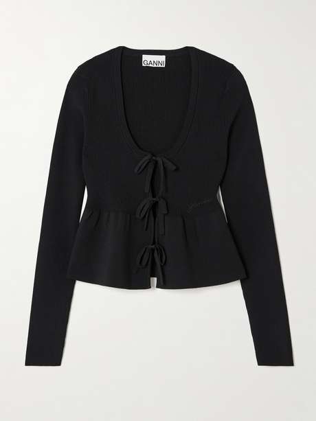 From the trio of ties to the ruffled peplum hem, GANNI's cardigan is such a sweet choice. It's rib-knitted for a close fit and embroidered with the label's logo in cursive lettering. Wear yours solo or underpinned with a tank for more coverage.