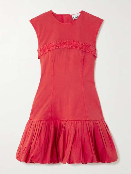 GANNI's dress ticks two major trend boxes for this season - the 'Racing Red' colorway and bubble hem. Inspired by corsetry, it's made from cotton-blend with a dropped waist and a ruffle across the chest.