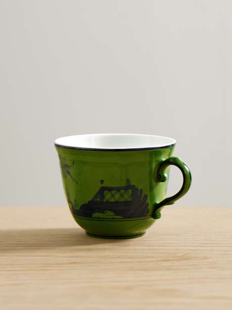 GINORI 1735's espresso cup is painted with the house's exquisite 'Oriente Italiano' motif. Elegant and light, it's crafted from porcelain with a strikingly angular handle.