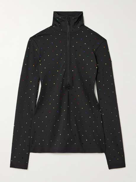 GOLDBERGH Éclair crystal-embellished stretch recycled-jersey half-zip top