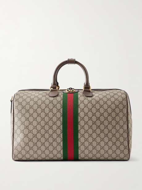 Guccio Gucci's time as a luggage porter at The Savoy inspires the house's namesake bag line. Crafted from monogrammed coated-canvas, this tote has a capacious shape and is trimmed with striped webbing and supple leather. The interior will comfortably fit everything you need for a weekend or overnight trip.