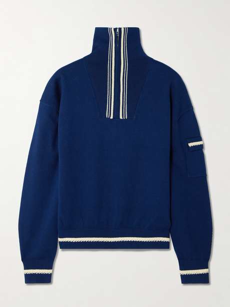 Vintage sportswear inspires the design of Guest in Residence's 'Jib' sweater. Made from a cotton and cashmere-blend, it's traced with contrasting stripes and textured piping. The half-zip, believe it or not, is a trending touch.