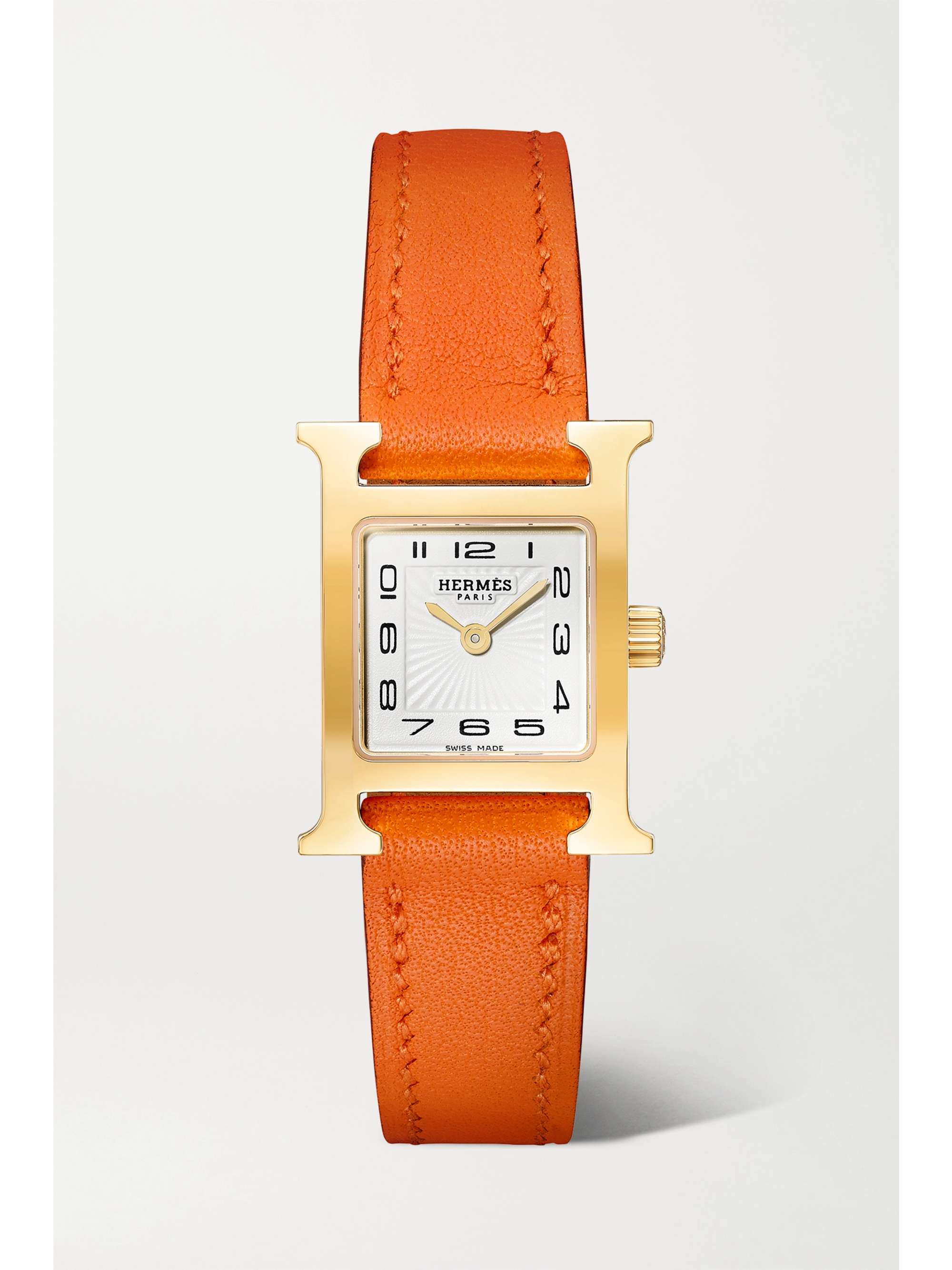 HERMÈS TIMEPIECES Heure H 17.2mm very small gold-plated and leather watch