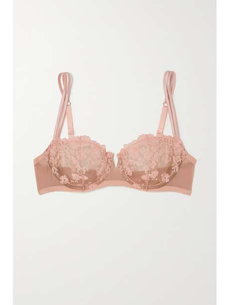 I.D. SARRIERI Annabelle embroidered tulle underwired balconette bra