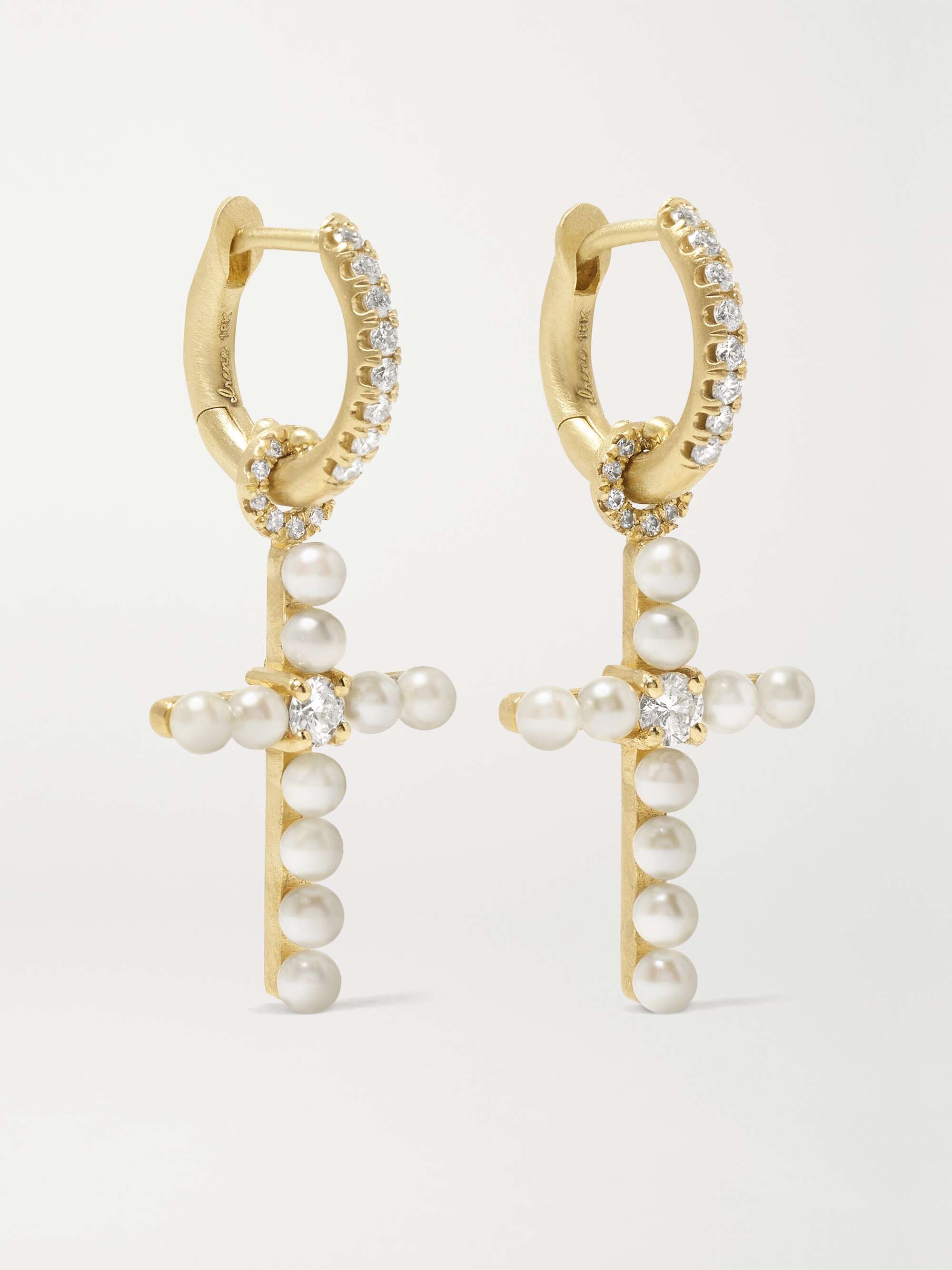 IRENE NEUWIRTH Immaculate 18-karat gold, pearl and diamond hoop earrings