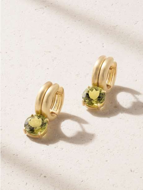 Irene Neuwirth's dainty earrings are part of the label's 'Heroic' collection, known for its distinctive stacked forms and soft, brushed finish. Handcrafted from 18-karat gold, they're set with one-of-a-kind tourmalines that beautifully reflect the light.