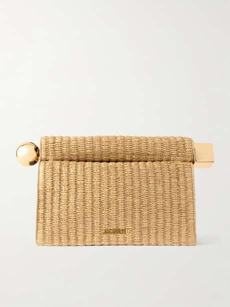 JACQUEMUS La Plage leather-trimmed raffia-effect clutch