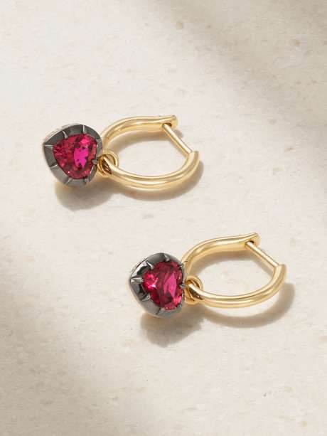 JESSICA MCCORMACK Gypset 18-karat yellow and blackened white gold ruby hoop earrings