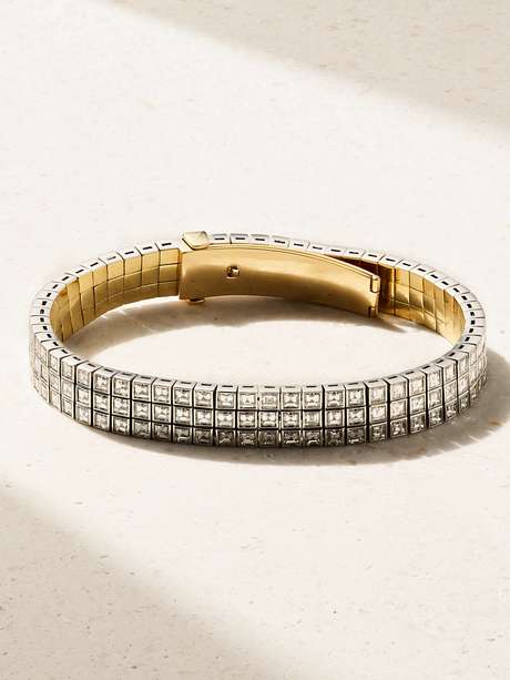JESSICA MCCORMACK Tapestry medium 18-karat white and yellow gold diamond bracelet