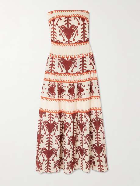 JOHANNA ORTIZ Another Chance strapless tiered embellished printed linen maxi dress