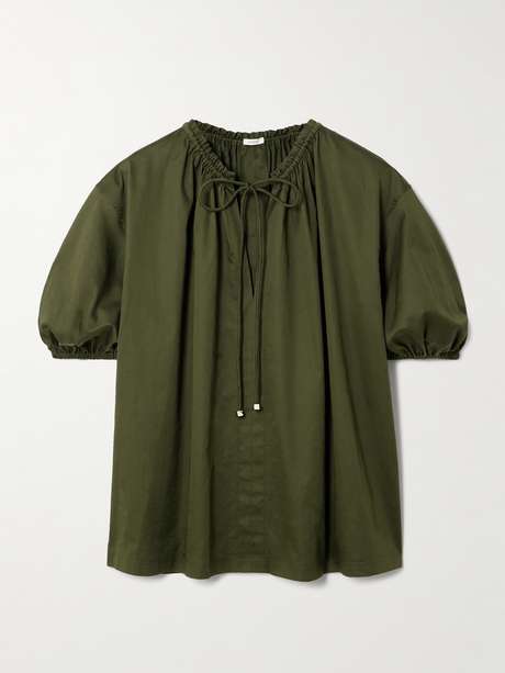 JOSEPH Nador tie-detailed gathered cotton-sateen blouse
