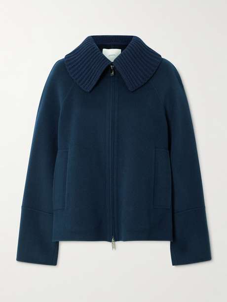 Joseph's 'Cooksey' jacket is made from a luxurious blend of wool and cashmere and contrasted with a chunky ribbed-knit collar. It has extended paneled cuffs and is fitted with discreet pockets.