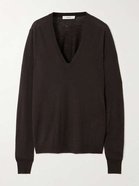 Joseph's sweater is one of those classic styles you'll wear for seasons to come. Spun from lightweight cashmere in a brown hue, it's loosely defined by ribbed trims and has a flattering V-neckline. Wear it with everything from cropped jeans to tailoring.