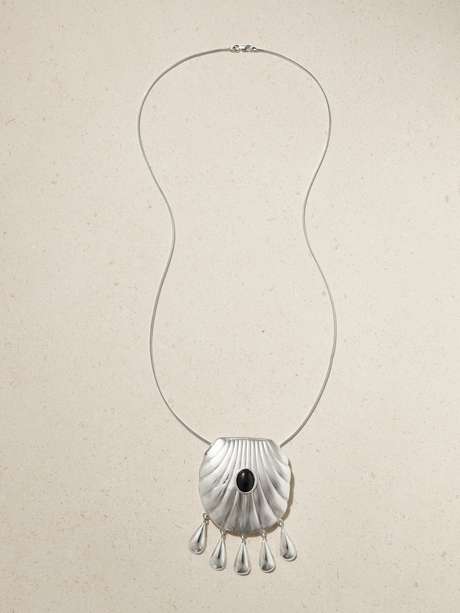 JUJU VERA founder Julia Ferentinos got her start as an antique jewelry dealer, so she knows a thing or two about crafting pieces that look authentically vintage. This 'Petra' necklace is handmade from silver-tone metal that's intricately carved to depict a shell and set with an onyx. It's anchored by five pear-shaped drops that sway gently as you move.