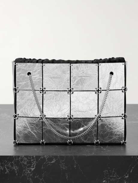 KHAITE's 'Emma' tote has been updated in a variety of different colors and finishes, each one just as striking as the last. This version has been made in Italy from square pieces of silver crinkled-leather held together by tonal rings. It's fitted with a detachable faille pouch that's perfect for securing your phone, keys and cardholder.