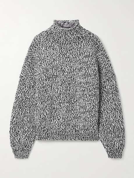 KHAITE's 'Leon' sweater is knitted with chunky black and white cashmere threads that give it a mélange effect. It has a cozy turtleneck and relaxed fit tempered by ribbed trims. Style yours with everything from jeans to satin skirts.