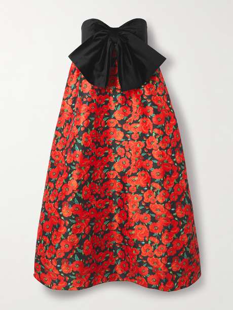 Kika Vargas' bold prints evoke a sense of romance. This 'Charlotta' dress is cut from taffeta printed with vibrant poppies and has an oversized velvet bow at the strapless neckline.